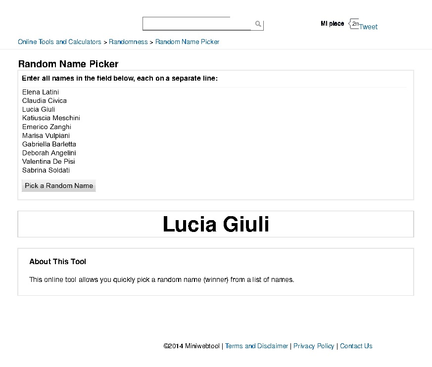 Alle 00.12 del 9 novembre con l’applicazione web Random Name Picker abbiamo estratto il nominativo tra tutti coloro che avevano condiviso in bacheca la nostra locandina dei corsi 2014-2015: